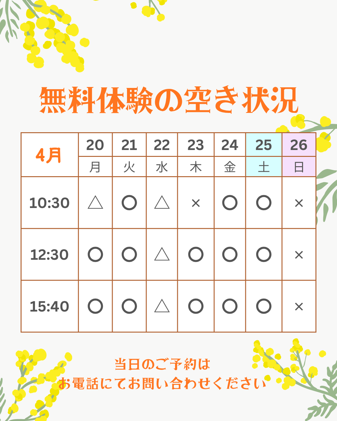 ※△または✖の場合や、その他の時間でも対応可能な場合がございます。