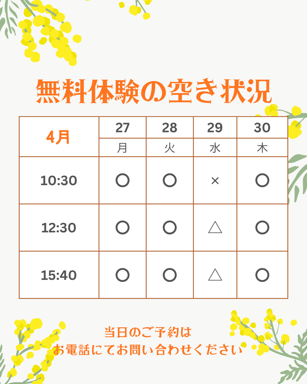 ※△または✖の場合や、その他の時間でも対応可能な場合がございます。